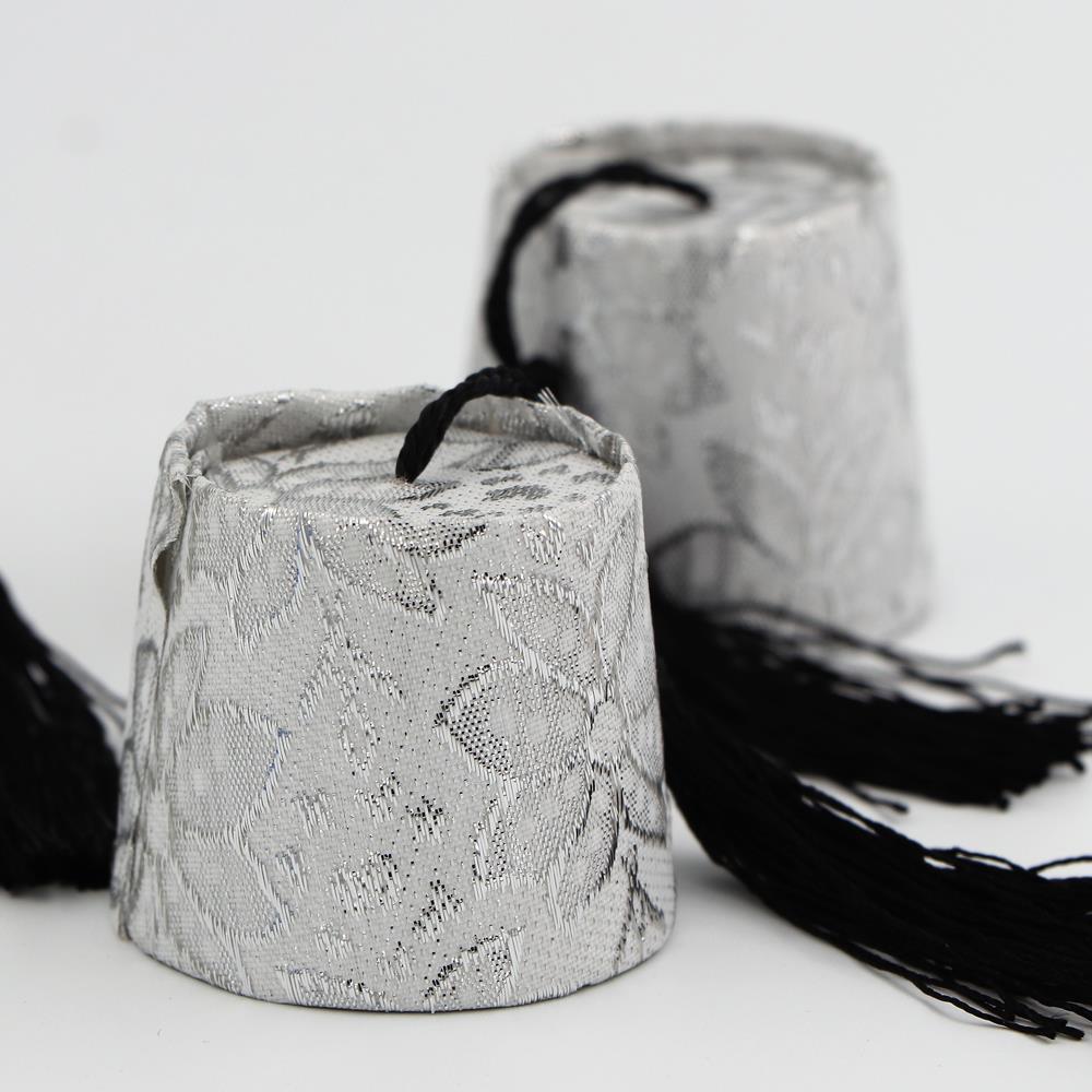 <p>טרבוש קטן נפתח למילוי, ועיצוב שולחן החינה, צבע כסף ועיטור פרחים</p>